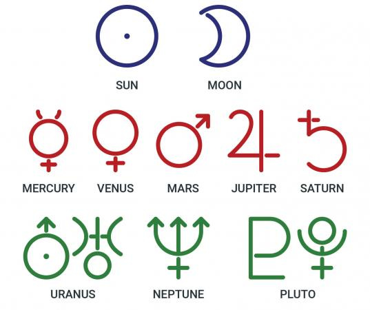 Planet: the symbols at the top that correspond with the planetary symbols used in your birth chart. See the following below for help with learning each symbol and it’s corresponding planet (although you can also click & learn about each of these on your Astrocartography map!)